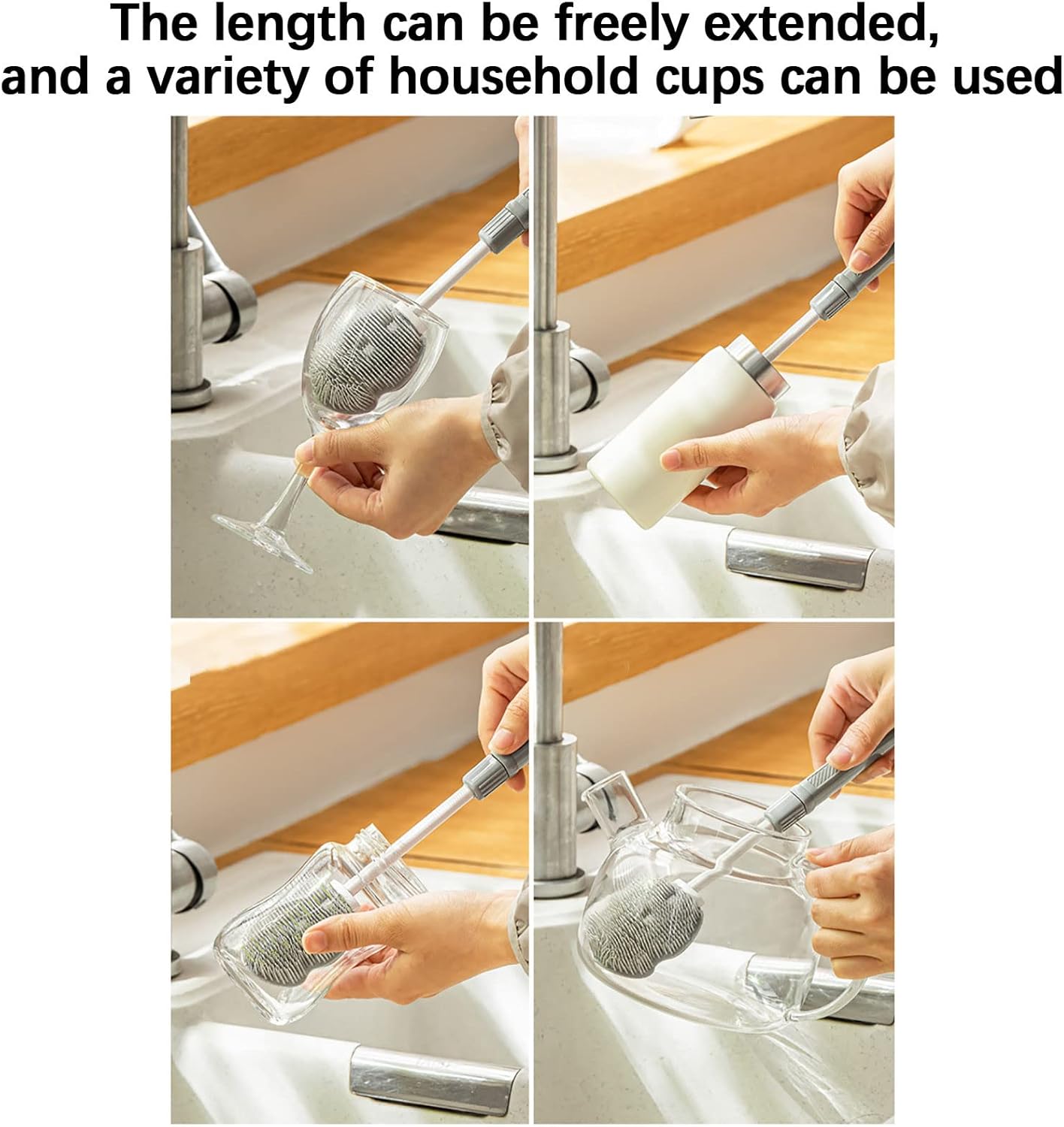 HyKabThe brush is small, cute, convenient and practicalFolding brush head can clean the bottom of the cupSilicone materials does not absorb waterFree telescopic handle, comfortable and labor-savingFine bristles fit the edges and cornersSpecificationsMaterials :TPE+PPMeasurement:5.5×2.2×24cmContain:1XBrushPlease allow slightly difference due to manual measurement .Colour may be slightly different since different monitor.Thanks.null