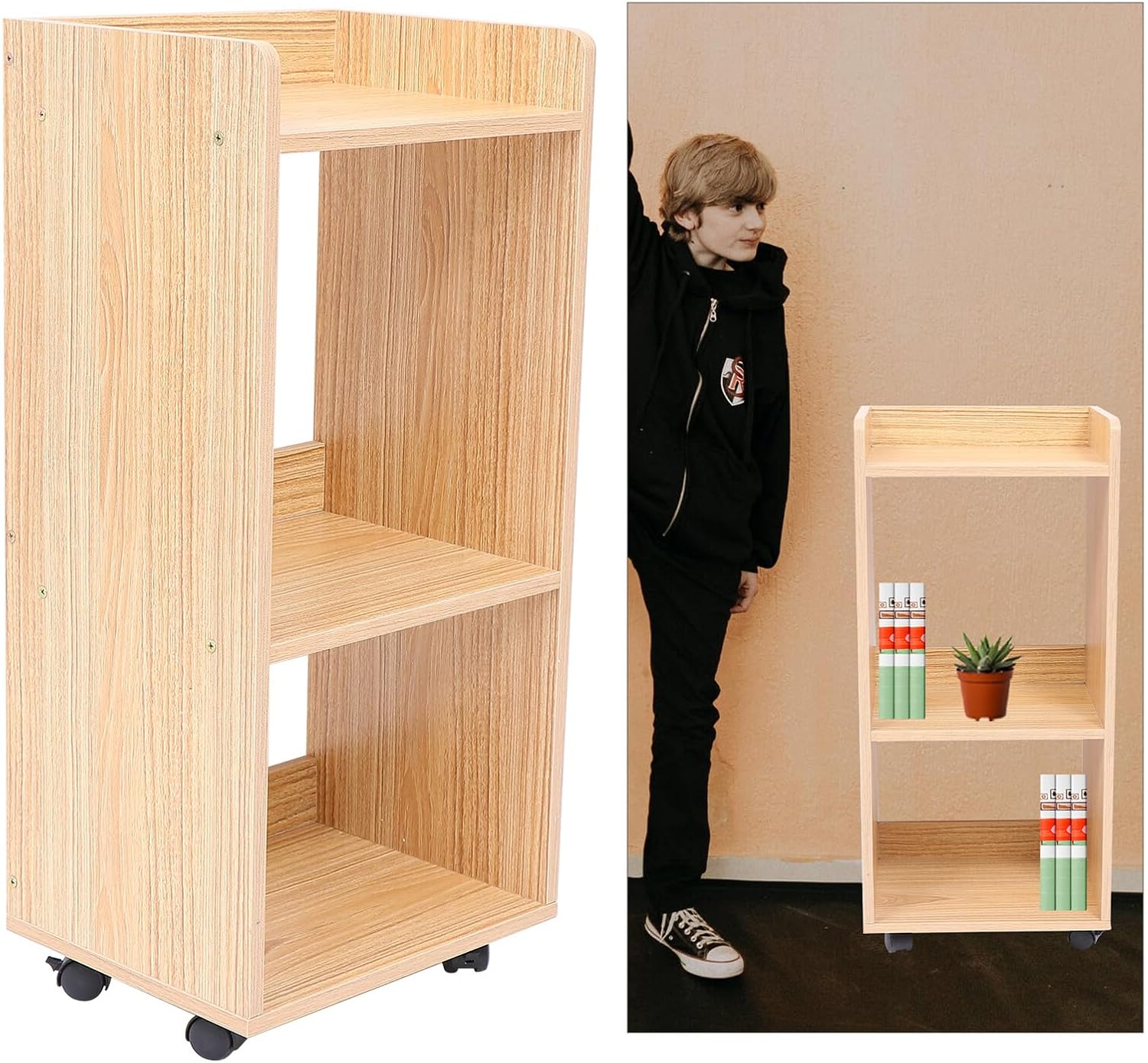 Package List 1 x movable storage rack Features - Color: Khaki - Note: Design with universal wheels style, assembly required Home Decor. -Product Info:Wheeled storage rack - Material: Wood, plastic - Size: 66.00X30.00X24.00cm/25.94X11.79X9.43in - wood material and fine production process, make it to use for a long time. - Its edges are smoothly processed to protect your hands from being scratched Movable Organizer. - It can help keep your home and office tidy and clean, save more space for you Wood Moving Storage Shelf. - It can use as a home storage holder, simple and very practical. Movable design does not take up space Floor Cabinet with Wheels. - You can put it anywhere in your home to add a warm atmosphere Sundries Shelf with Wheels.Goods InformationRetro Storage Rack Made of premium wood material, surface is very smooth, sturdy for placing many kinds of items, such as small plants pot, books, small ornaments and more.Floor Cabinet with Wheels This multi-layer solid wood moving storage holder is pretty, suitable for personal home or office use